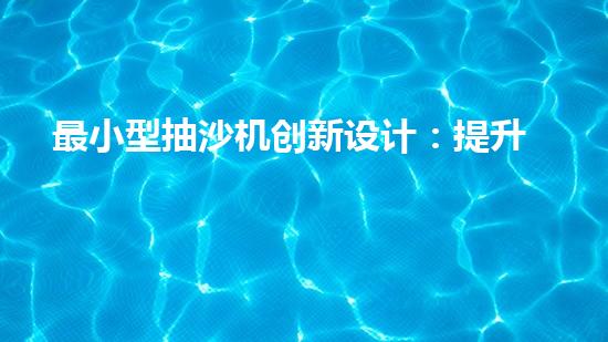 最小型抽沙機創新設計:提升效率的抽沙設備如何改變產業格局?
